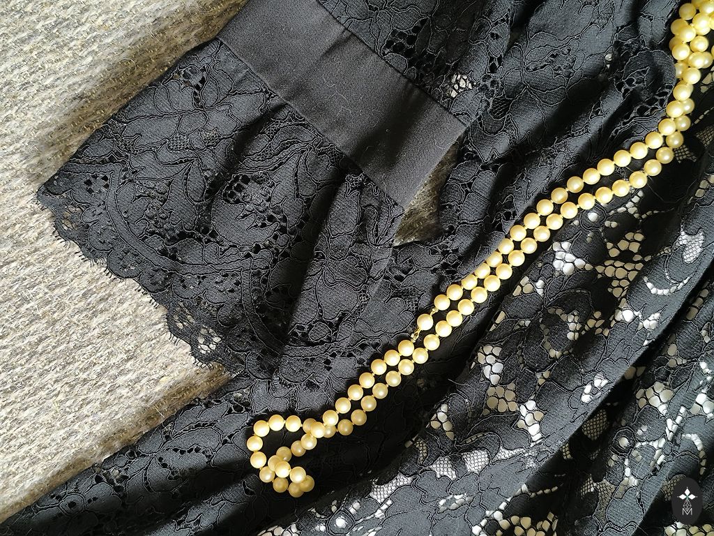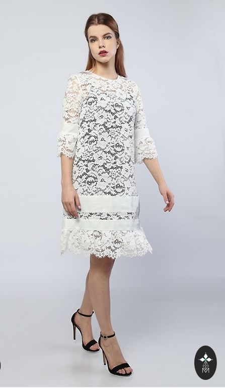Tume pitsmustriga heledal taustal annab kleidile piduliku ja elegantsi. Tänu oma lõikele rõhutab kleit ideaalselt siluetti ja loob kerguse tunde.