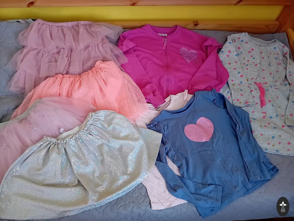 Püksid südametega, suurus 122. Ülejäänud on suurusega 122/128.