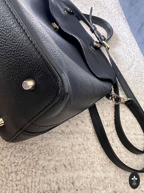 Must, klassikaline villane mantel, sirge lõige. Ilma voodrita, vööta ja lõhikuta. Ees taskutega. Pikendatud õlgade osa. Pikkus 108 cm. Õlgade laius 49 cm. Varruka pikkus 46 cm. Rindkere/talje 50 cm.
