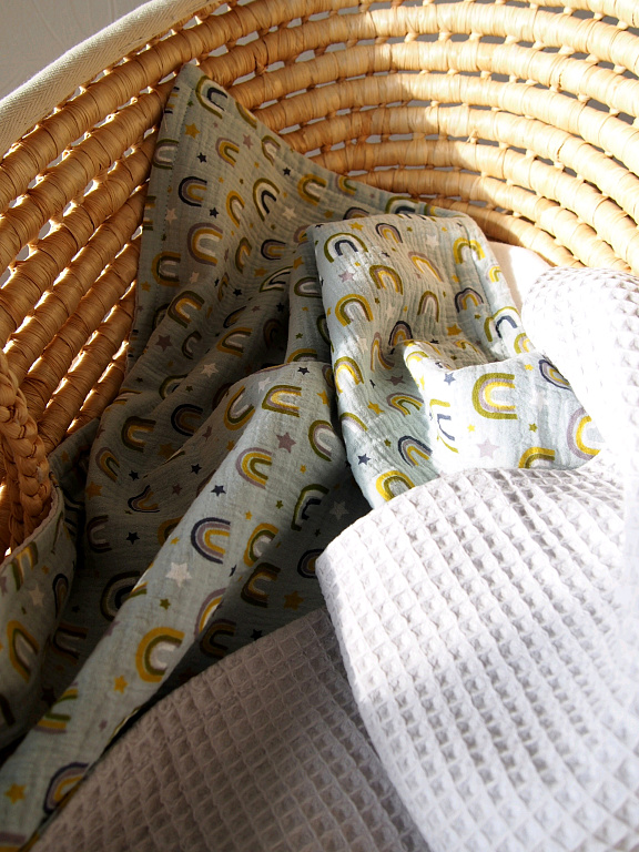 Can be used on both sides. A great help in the first few months. Handmade, sewn to order.