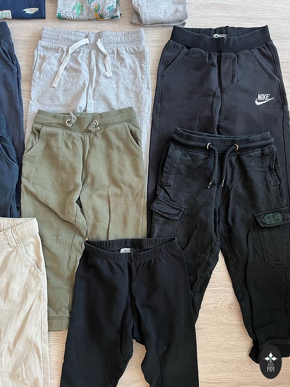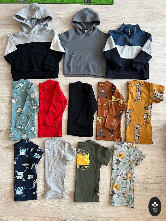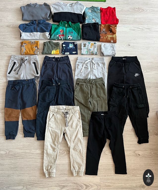 Naudoti, geros būklės, dydis 140, bet artimesnis 134. 3 vnt. džemperiai su gobtuvais (vienas su užtrauktuku), 3 vnt. džemperiai be gobtuvų, 1 vnt. marškiniai ilgomis rankovėmis, 2 vnt. sportinės kelnės, 1 vnt. džinsai, 1 vnt. šortai, 1 vnt. plonos lietaus kelnės.