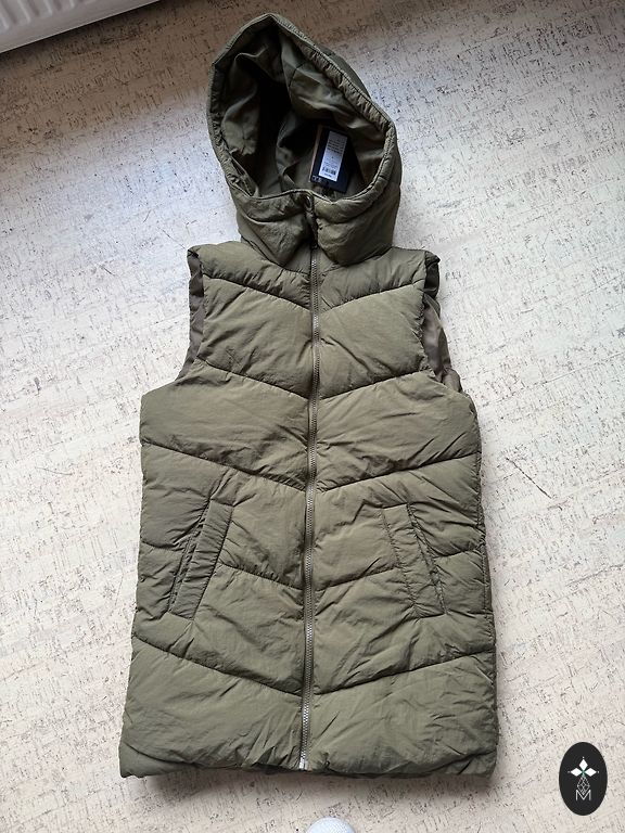 Size XS-S (oversize). With a hood. Fastening - zipper. Placket with snap buttons. With side pockets. Waterproof fabric. Shoulder length - 16 cm Sleeve length - 57 cm Chest circumference - 112 cm Length - 87 cm