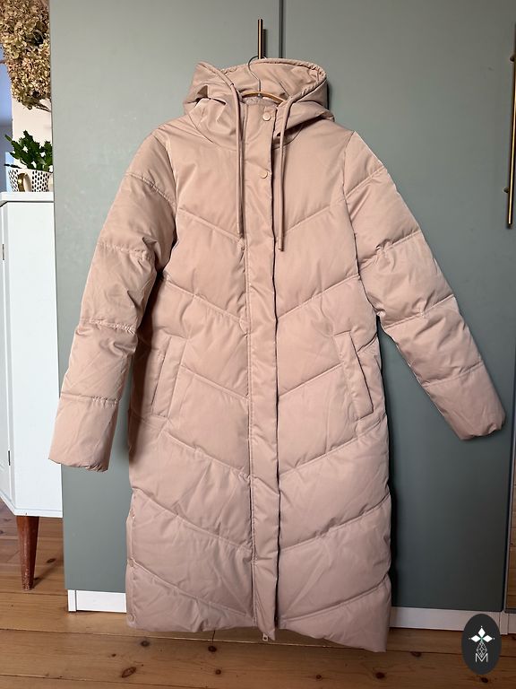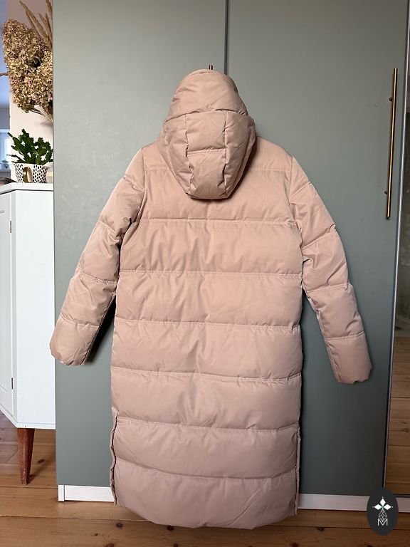 Krāsa taupe. Lietota 1 sezonu. Pildījums eco dūnas. Pec ķīmiskās tīrītavas.