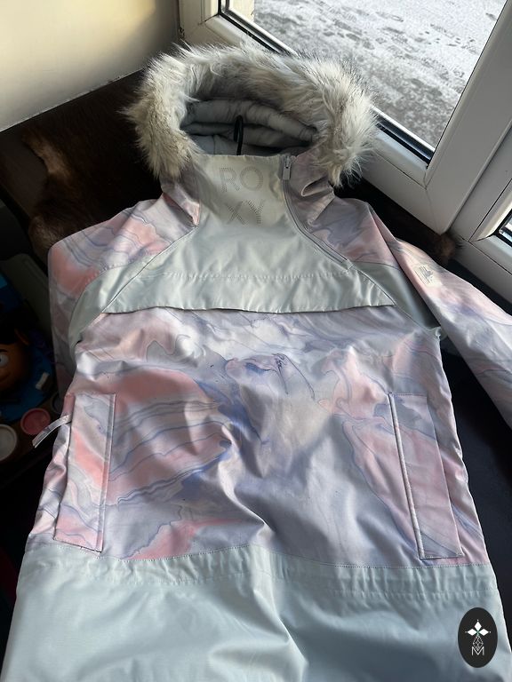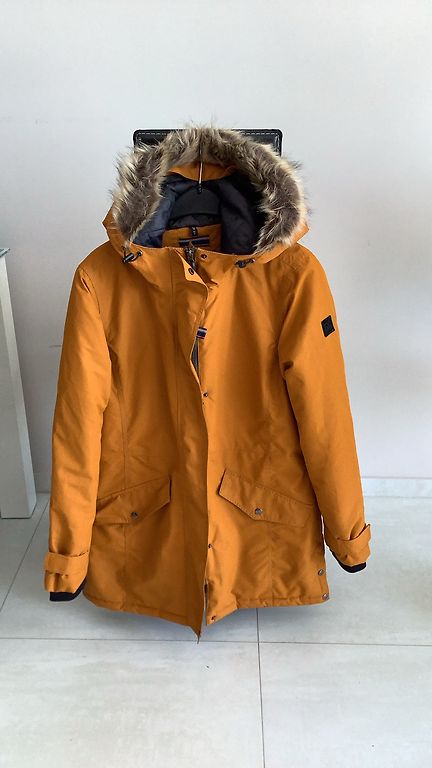 Tume sinine. Sobib suurusele M, väike L. Pikkus 90 cm. Kapuutsiga. Kapuuts on eemaldatav. Varruka pikkus 68 cm. Hind + omniva.