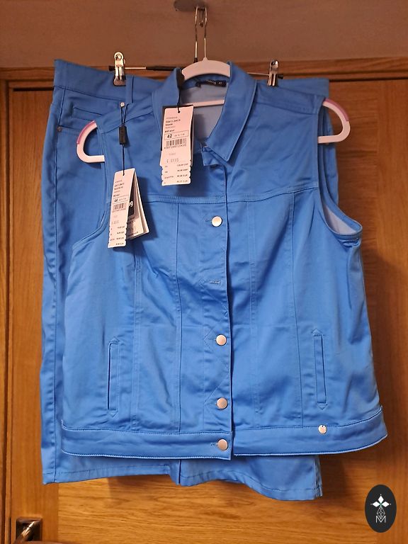 Bought on Andele, but unfortunately too big. Contains 30 percent wool. Beautiful suit. Soft, pleasant fabric. Would never sell if it weren't 2 sizes too big! Trending checkered pattern for 2026! Size 46. XXL size, or XL. Way too big for my L/XL size. Color closer to the first picture.