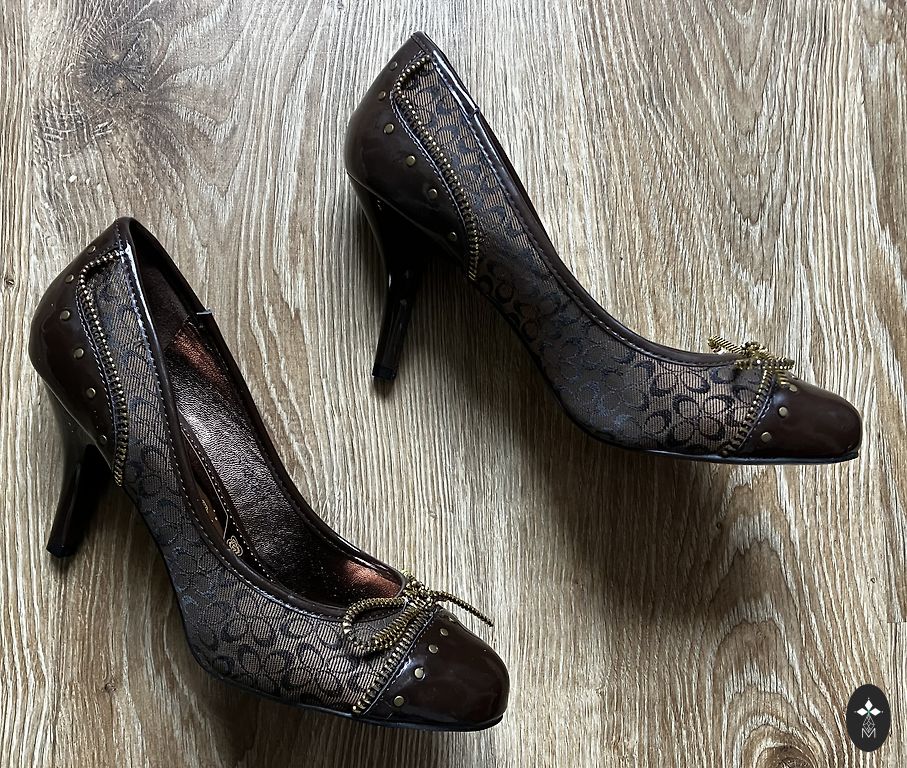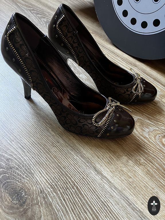 Heel height 7.5 cm. Size approximately 37 (does not correspond to the size 39 indicated on the shoes). Can be tried on in Riga (Old Town) or Jelgava.