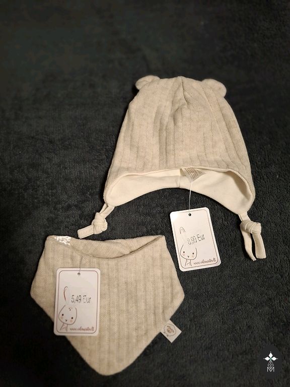 Jauns cepures un tuneļšalles komplekts (tikai birkas nogrieztas) rudenim/pavasarim. Kokvilna, izmērs 52/54 (derēs apmēram 1,5-3 gadu vecumam).