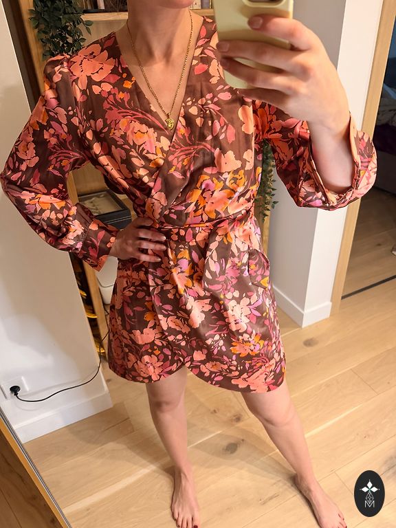 Labai mažai dėvėta. Tinka S ir M dydžiams, nes suknelė yra oversized. Didelė stilinga gobtuvė. Dėvėtojas tikrai neliks nepastebėtas. Ilgis 86 cm, nuo pažasties iki pažasties 60 cm, elastinga juosmens juosta labai gerai tempiasi.