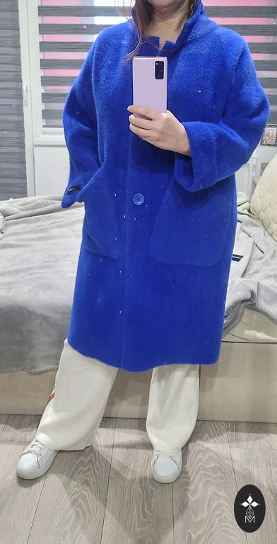 Rudzupuķu zilais. Labas kvalitātes mētelis. Nav no tām plānajām a la "alpakām". Tāds "nopietns". Elementārs kopšanā- var mazgāt veļasmašīnā. No lietošanas pazīmēm- kņopes smuki jāpiešuj. Nenovalkājams 🙂