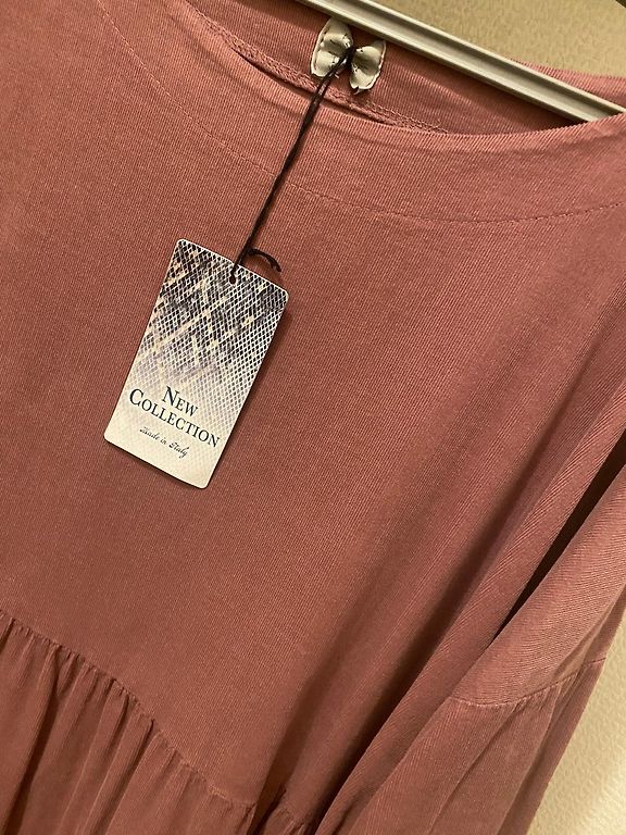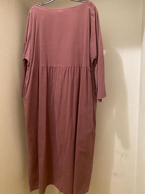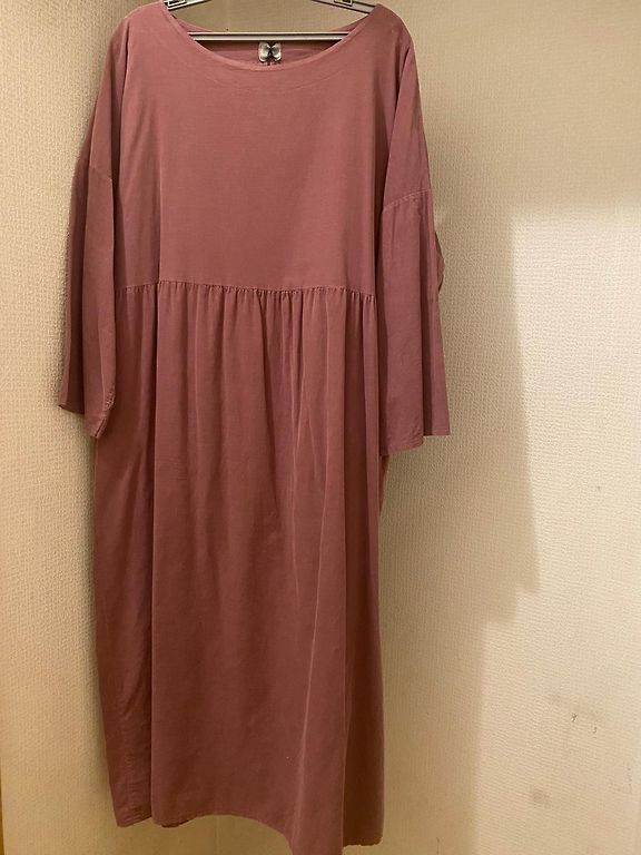Labai malonus audinys. Suknelė su kišenėmis. Surinkta ties juosmeniu, kad paslėptų tas vietas, kurių nenorite akcentuoti. Krūtinės apimtis 62 cm. Ilgis 129 cm.