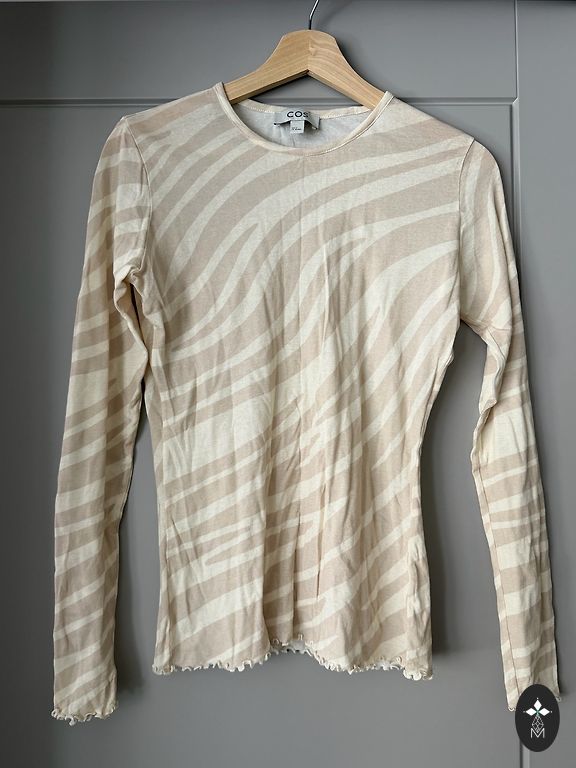 Žavinga COS palaidinė, dramblio kaulo spalvos, 36 dydžio, bet ji yra plati ir laisva, todėl tiks ir didesnių dydžių moterims. Gražios, ilgos rankovės. Labai graži, bet nežinau, kaip ją derinti su kitais savo garderobo drabužiais.