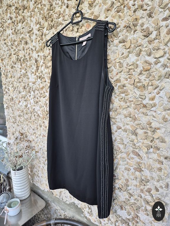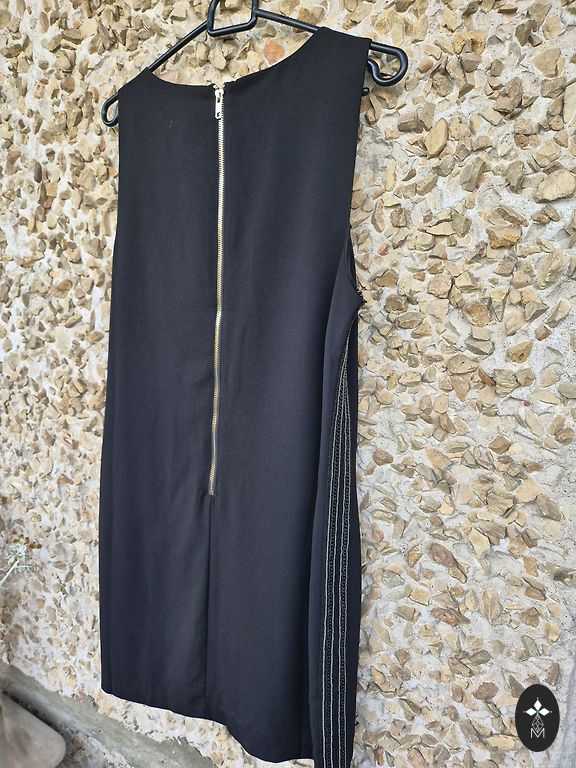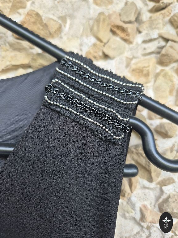 Labai įdomi kokteilinė suknelė su tvirta blizgančio audinio korseto tipo viršutine dalimi.