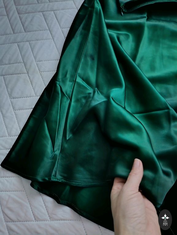 Krāsa: gaiši pelēka ar vieglu sudraba mirdzumiņu, kas piešķir svārkiem svinīgumu un izsmalcinātību.