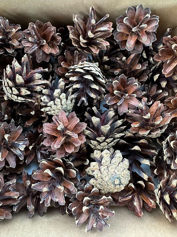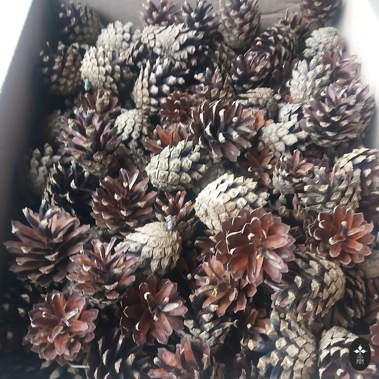 Продаю коробку сосновых шишек (50 штук), шишки большие, красивые и сухие, высота от 5 см до 8 см, доступно большое количество.