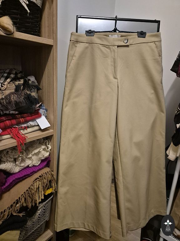 Талия 84 см,сзади талия на резинке.Обьем бедер 114 см,длина 108см.Есть бежевые брюки.Piegāde+1.99.Vidukļa apkārtmērs 84 cm, elastīga jostasvieta aizmugurē. Gurnu apkārtmērs 114 cm, garums 108 cm. Pieejam bēšas bikses.Piegāde +1,99