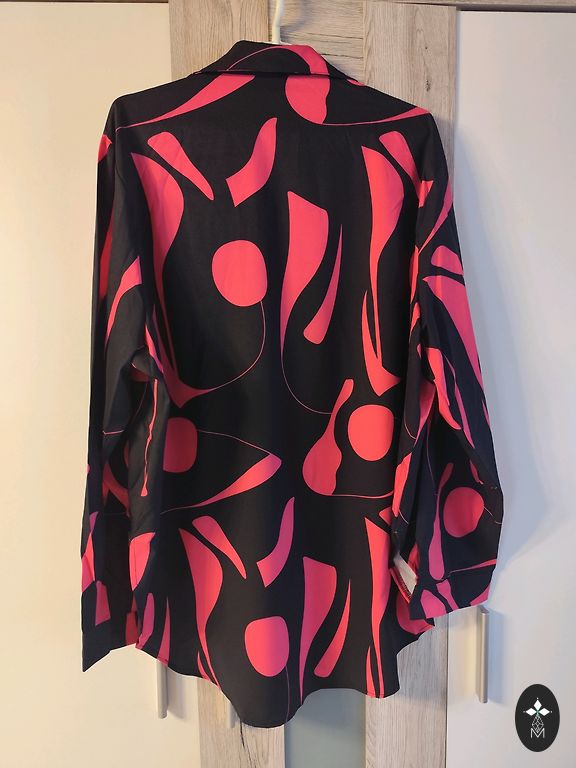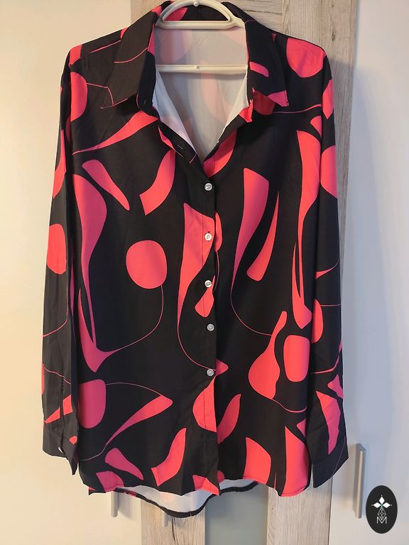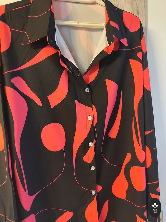 Atspalviai tarp rožinės ir violetinės. Krūtinės apimtis 150 cm. Šonai trumpesni. Priekio ilgis 82 cm. Nurodytas dydis 4XL.