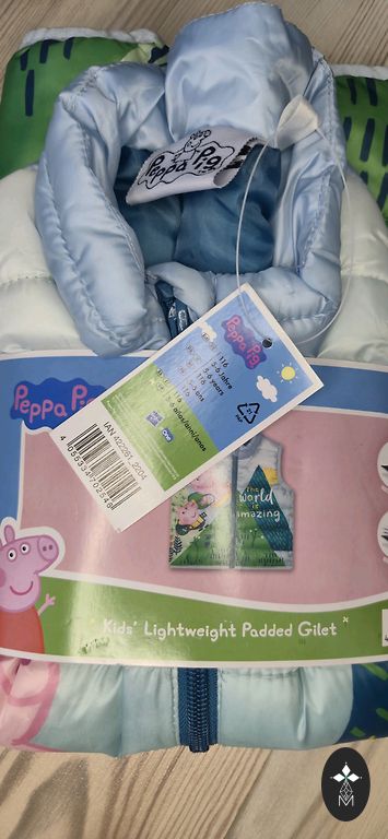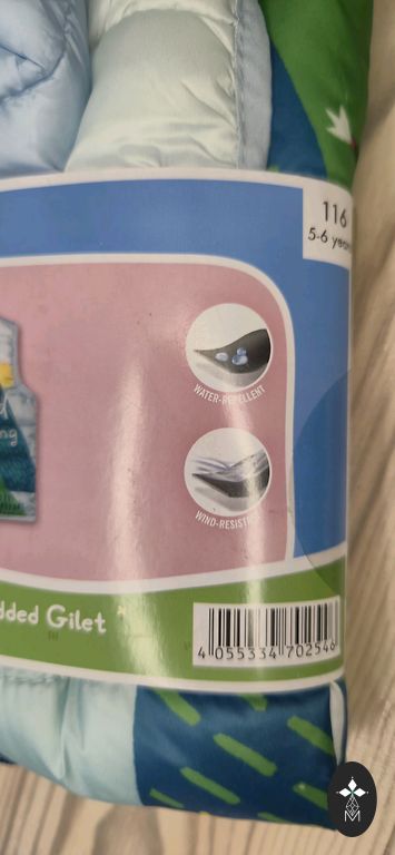 Liewood šilta liemenė. Pirkta nauja, naudota vieno vaiko. Be esminių defektų. Vaikui buvo lengva užsisegti. Yra kišenės ir atsarginė spaudė. Kaklo dalyje nedidelis apykaklė, kuri ypač šauni - apsaugo kaklą nuo peršalimo.