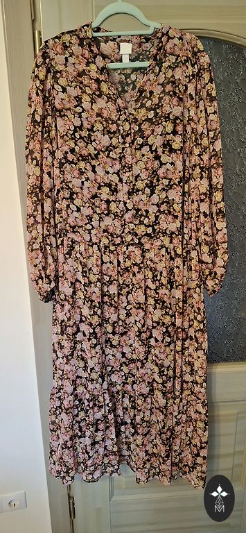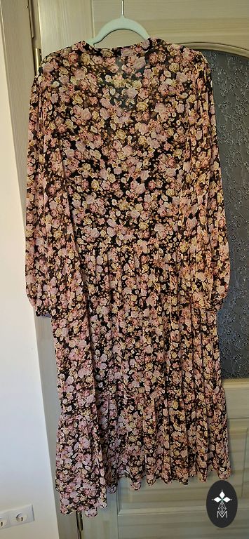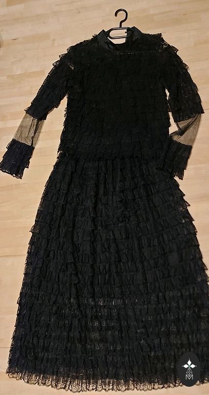 Juoda su mažais raukiniais, rožiniais žiedais, nėriniais. +siuntimas