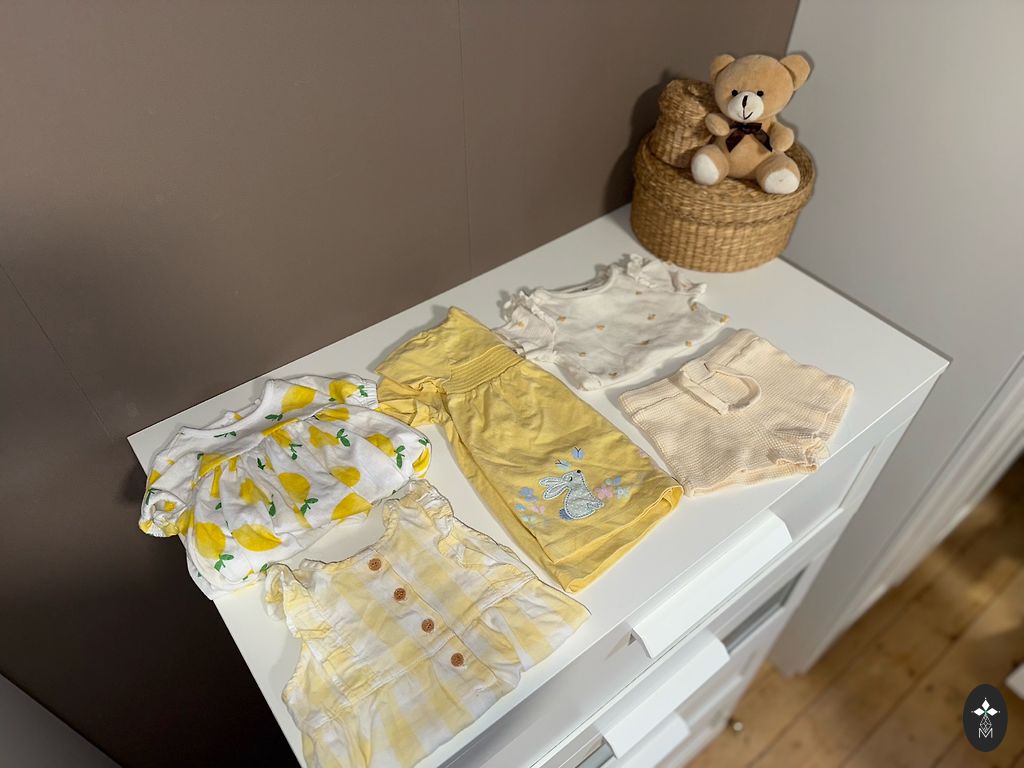 Komplekts uz 3-6m jeb 62/68, ir kaut kas uz 68 izm, bet der ātrāk. Ir 1x vilktas vai pat tikai pārskalotas un ir bijusi kāda, kas uzvilkta biežāk.