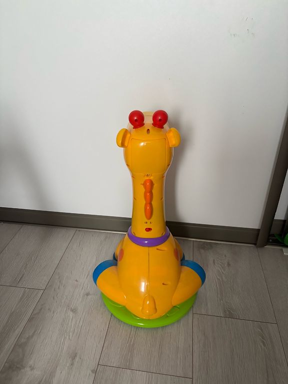 A cube with different surfaces, pressing the colorful buttons plays a melody and lights up. The ends of the arch have adhesive, allowing it to be attached to a car seat or bed. Each part rotates when moved. The tiger needs a battery replacement, pressing the nose makes it blink and play a song. A drawback is some scratches from use here and there. Shipping is covered by the buyer.