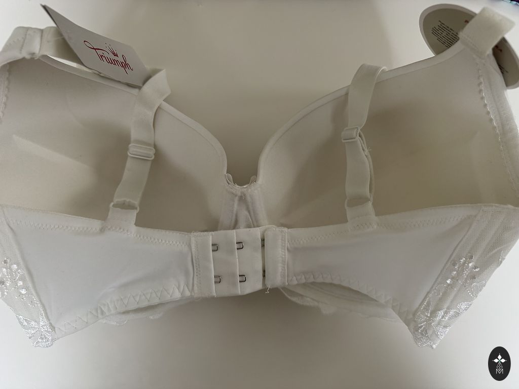 Elegantiškas baltas liemenėlė su nėrinių apvadu ir reguliuojamu užsegimu priekyje. Be siūlių nugaroje. Idealiai tinka po vestuvių suknele ar bet kokiu drabužiu, kur nenorite matyti siūlių. 80 % poliamidas, 20 % elastanas.