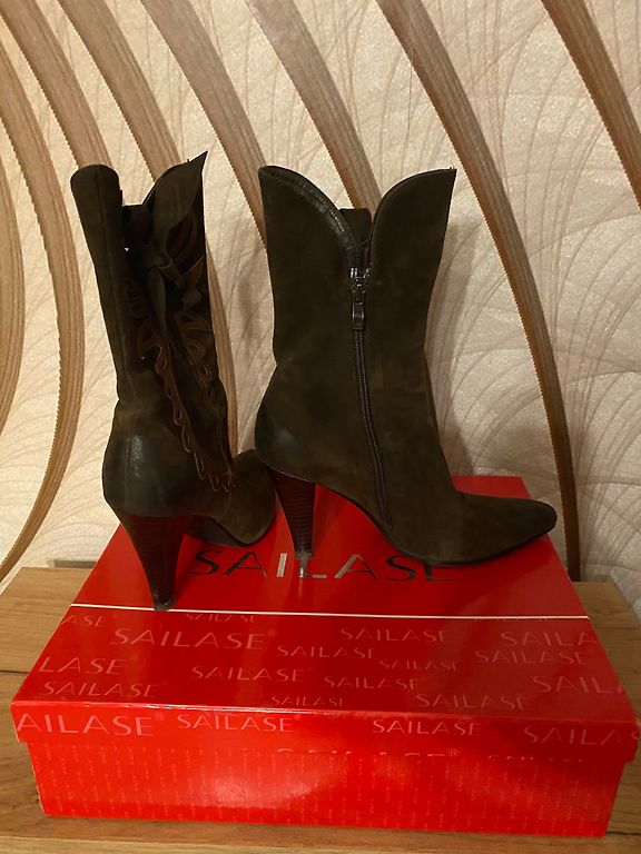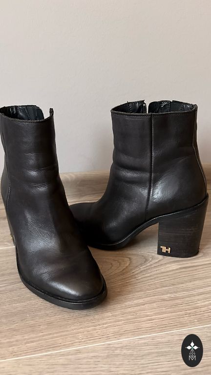 Twice-worn Tommy Hilfiger suede boots, size 37, best suited for narrow to medium feet. On a small heel. In a very beautiful, autumnal color. Signs of wear on the heels and sole, everything else is like new. Delivery costs are covered by the buyer.