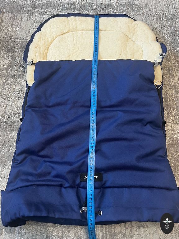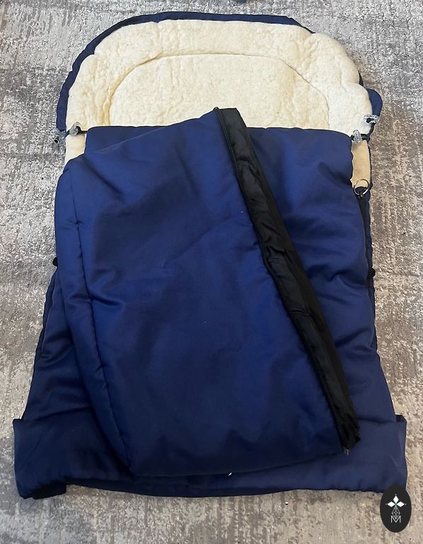 In excellent condition, the stroller cover can also be placed in a car seat as it can be threaded through. Inside is real sheep wool, very warm, impermeable.