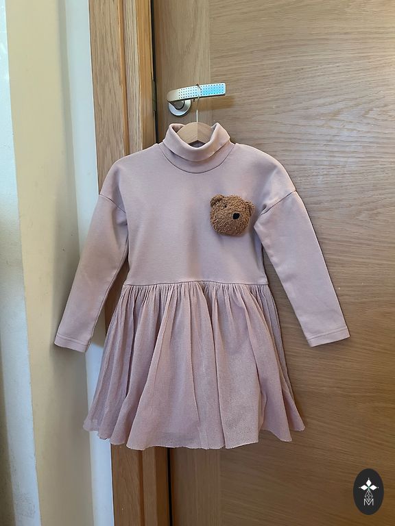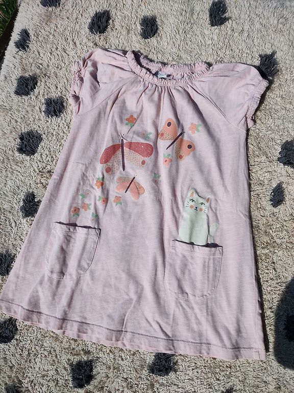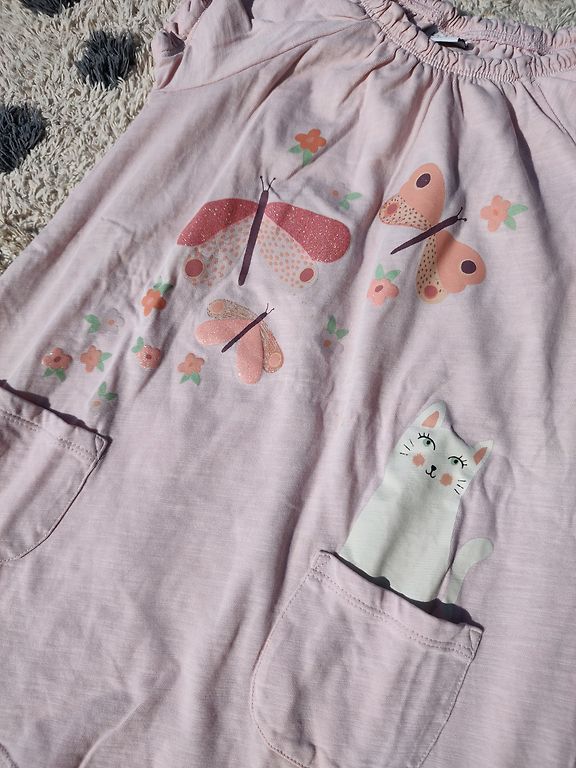 100% kokvilnas ļoti kupla kleita. Zazacoutre stilā. Koša. 98.izmērs, bet var vilkt līdz 104., jo viduklis regulējams ar jostiņu. Vilkām 3-4 gadiem.