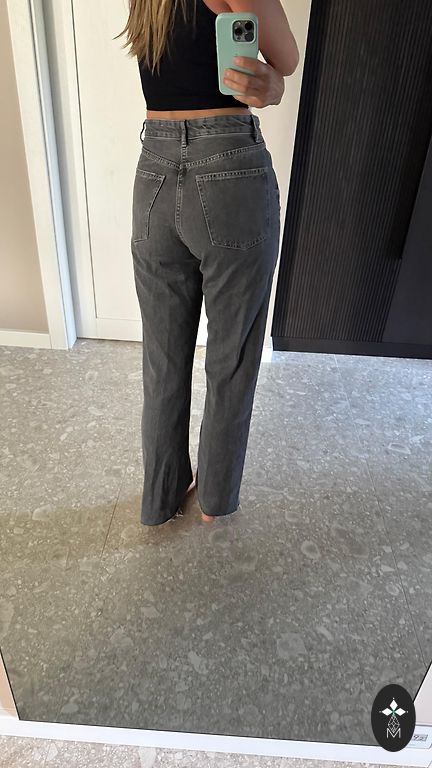 Taisnas, stingra, nestaipīga džinsa auduma bikses.