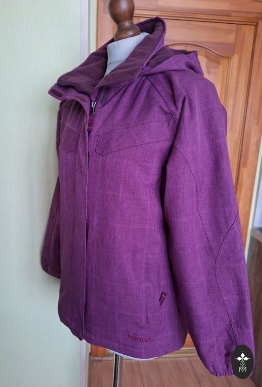 Vēju un ūdens necaurlaidīga virsjaka. Labi piemērota nodarbībām ārā. Piedurknes garums - 54cm, jakas garums , neieskaitot apkakli 62cm, krūtīs garums - 52*52cm. Visi rāvējslēdzēji un lipekļi darbojas.
