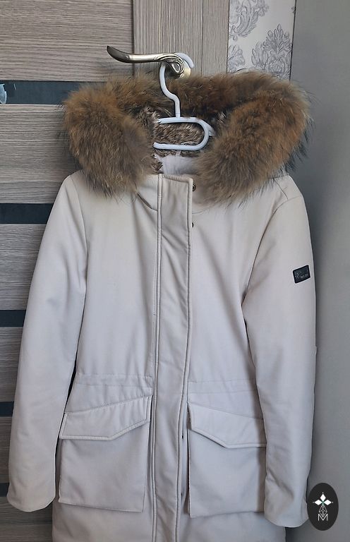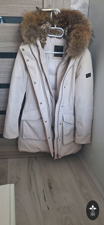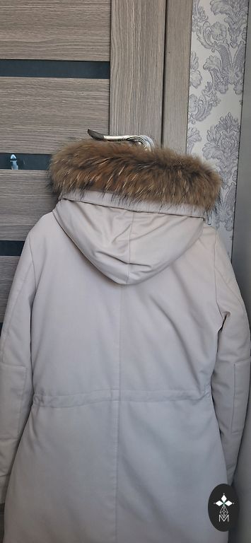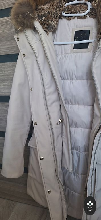 Стёганая верхняя куртка/пальто Montego для весны. В отличном состоянии, без дефектов. Размер 44. Длина 100 см, грудь - 60x2, бедра также 120 см. Внизу 3 кнопки. Манжеты на рукавах. Очень красивый бежево-золотистый оттенок.