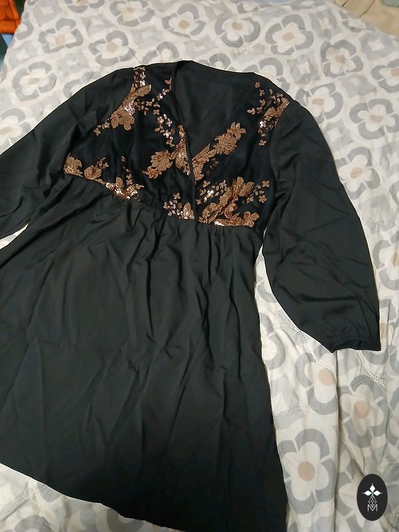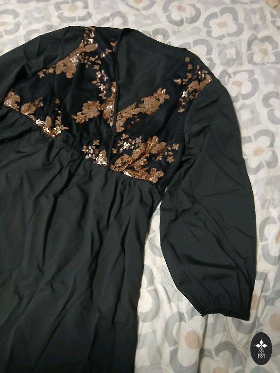 Visiškai naujas, be dėvėjimo žymių. Tankus, plūstantis audinys su lengvu satino blizgesiu. Stilingas kirpimas su diržu, galima dėvėti kaip suknelę arba kaip pailgintą švarką. Dydis EU S / MEX 26 Gamyba – Marokas