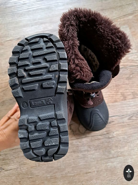 Куртка от Sinsay, указан размер 104, но она меньше. Брюки от Lupilu, б/у, размер 98. Из недостатков — небольшие потертости на коленях и концах брючин.