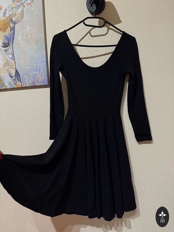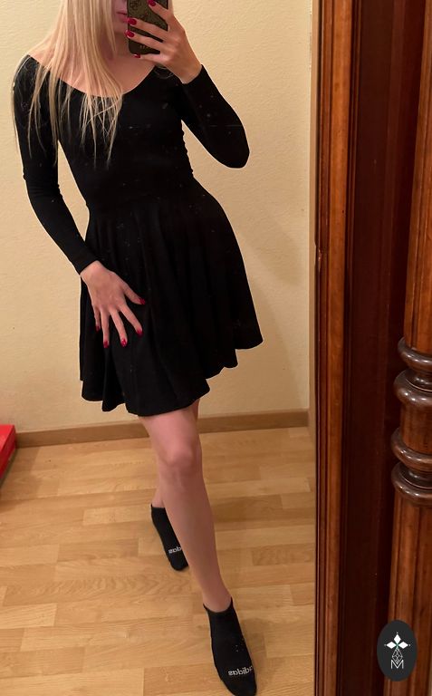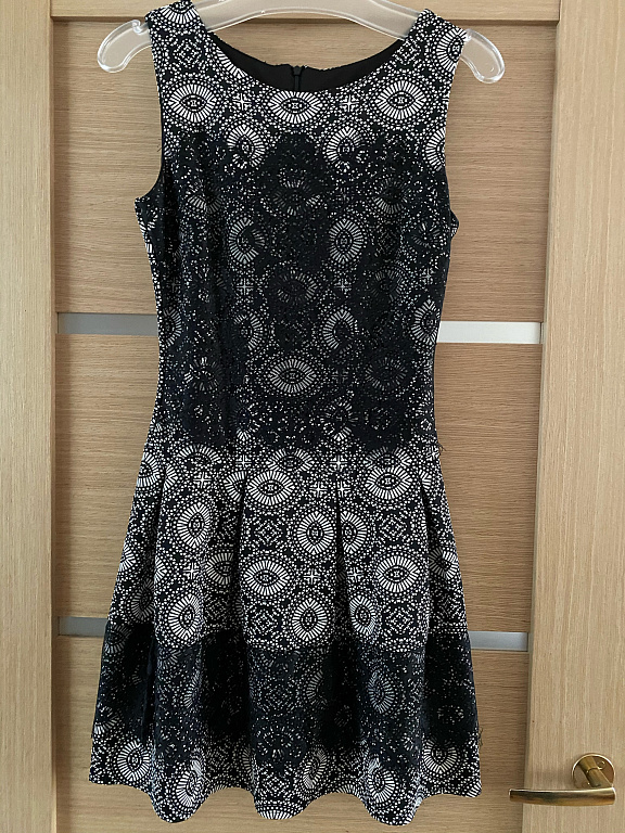 Overall, the dress is in good condition, without significant defects, but there is a small, inconspicuous stripe on the back (if it bothers and with good effort, I think it can be washed/cleaned completely), the fabric is slightly pilled in the skirt part at the front, but inconspicuously and does not interfere with wearing, otherwise in very good condition.