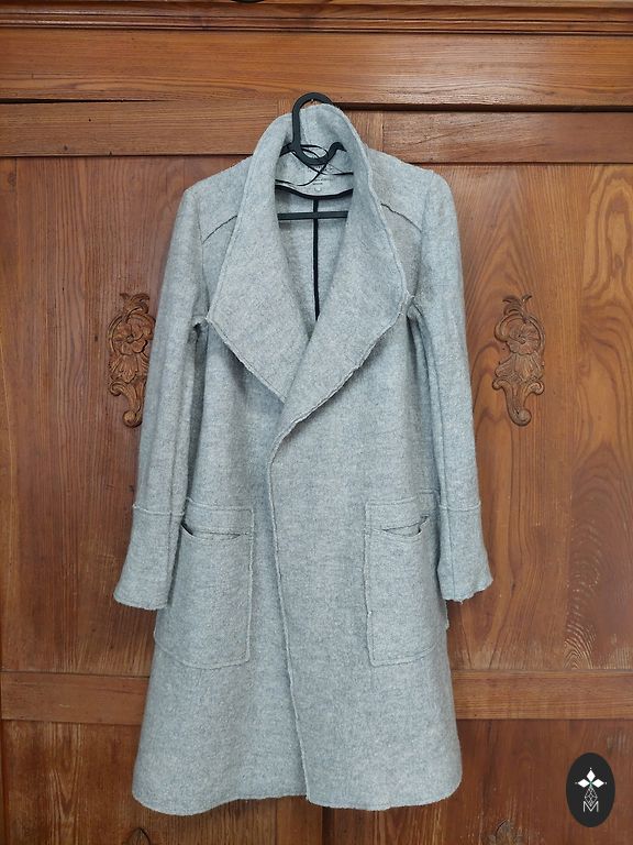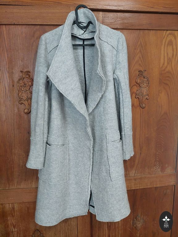Stefanel ilgas striukė, sudėtis 40% vilna, 10% kašmyras. Dydis S, bet tiks M - krūtinės 53cm, ilgis 88cm. Striukė yra nauja, bet be etikečių ir kainų žymių, tik su atsarginių sagų maišeliu.