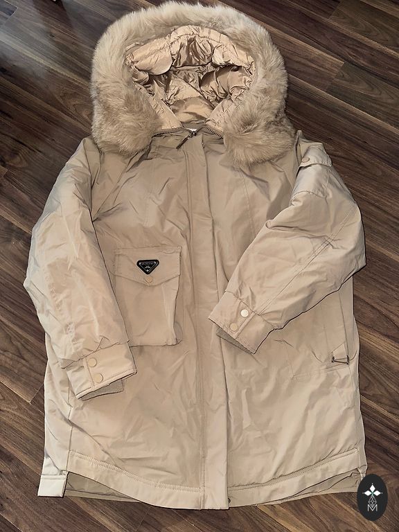 Be pūkų užpildo. Ne labai stora, bet šilta. Tinka dėvėti ir žiemą! Turi specialią šiluminę izoliaciją, kaip parodyta nuotraukoje. Kapišonas nuimamas su spaustukais. Ilgis 86 cm, plotis pečių srityje +/- 94 cm. Rankovių ilgis 62 cm.