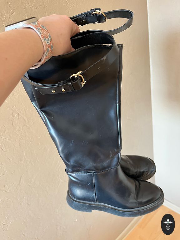 Элегантные, красивые кожаные сапоги, можно носить осенью, весной, а также зимой на мероприятия. Очень удобные и устойчивые. Надевала 3 раза, потом повесила в шкаф, а теперь продаю (вверху).