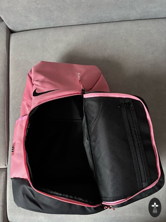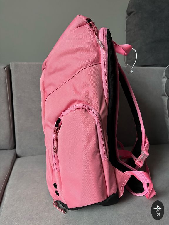 GUESS USA logotipu dekoruotas rausvas kuprinė. Dydis: 34x30x13 cm. Medžiaga: dirbtinė oda, poliuretanas. Autentiška.