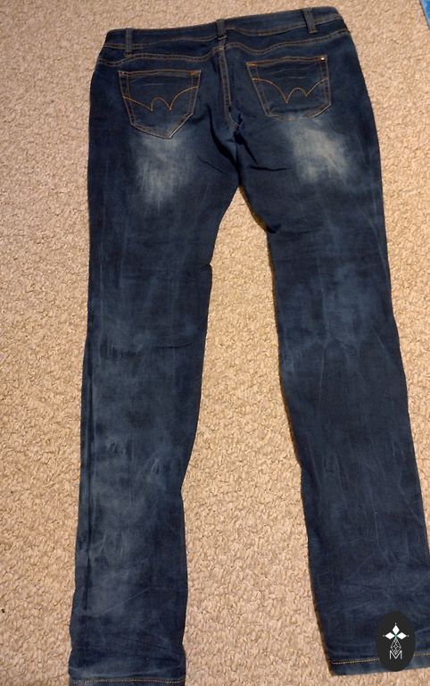 Темно-синие брюки. Надевались всего несколько раз. Довольно хорошо сидят. Длина 102 см, талия 43x2.