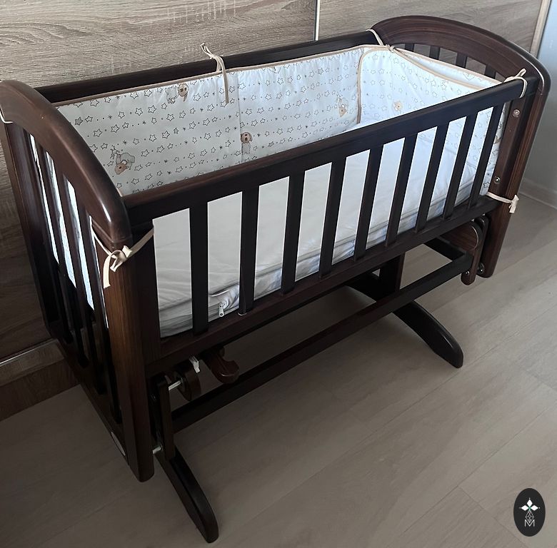 We are selling our favorite, comfortable Troll crib that grows with the child. Used from birth until almost 3 years of age, the mattress height is adjustable to 3 levels. One side grid also slides down and up. Spacious box with 2 compartments, if desired, I can provide a buckwheat mattress. The wheels have brakes. The crib has no significant defects, the mattress has a stain, but it can be removed at the dry cleaner if necessary. Located in Riga, self-pickup, disassembled and packed. We can also arrange to deliver the crib to you.