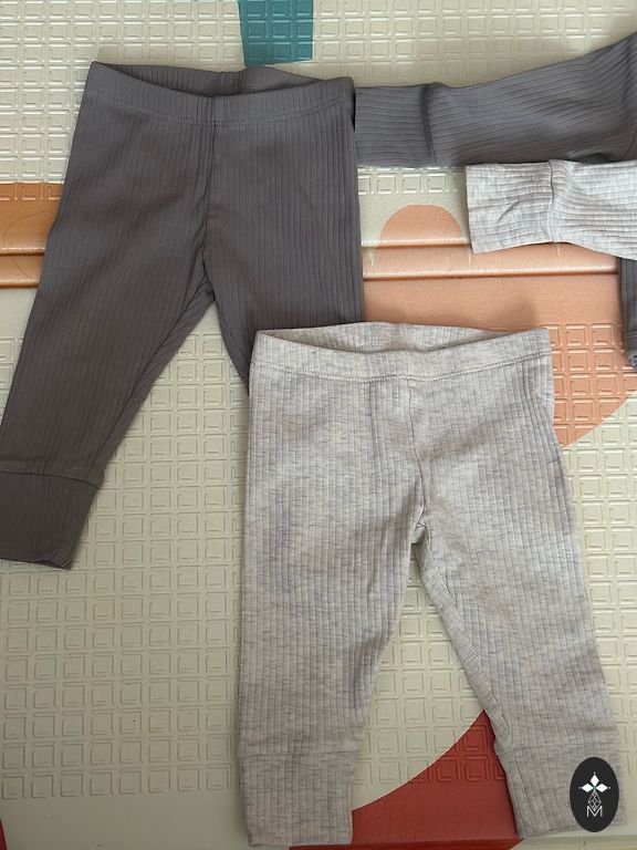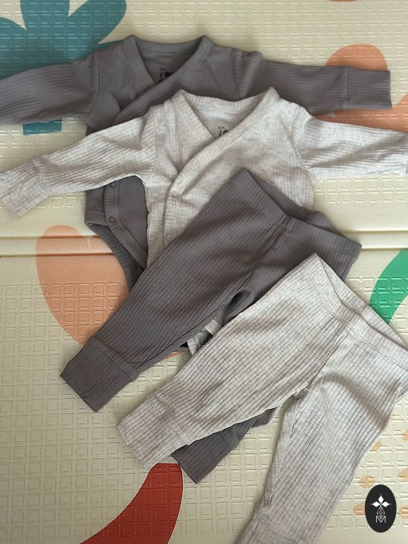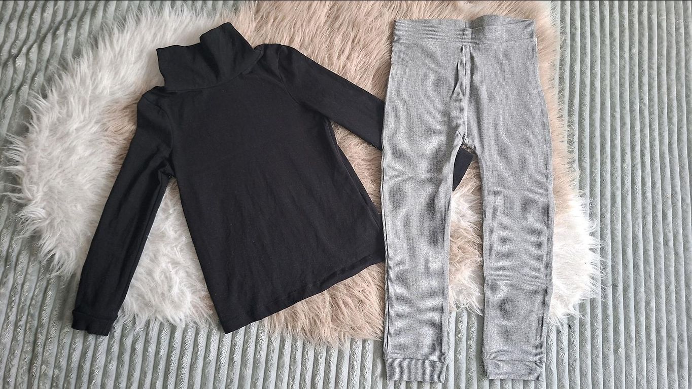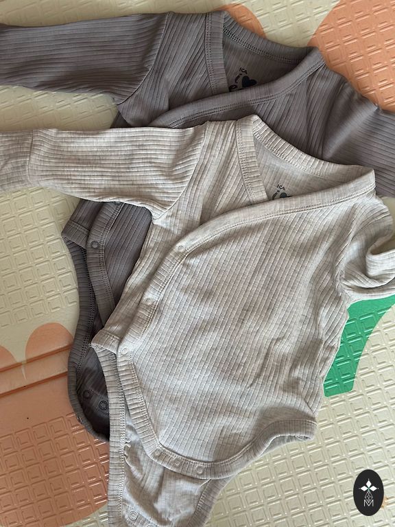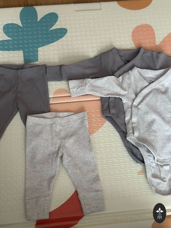 Divi bikšu pāri viens 62 otrs 68 izmēra. Bodijs 68 izmēra, klāt dodu zeķītes kas sader pēc krāsas. Viss ideālā stāvoklī, tikai bodijam priekšā mikro caurumiņš, bildi pielieku