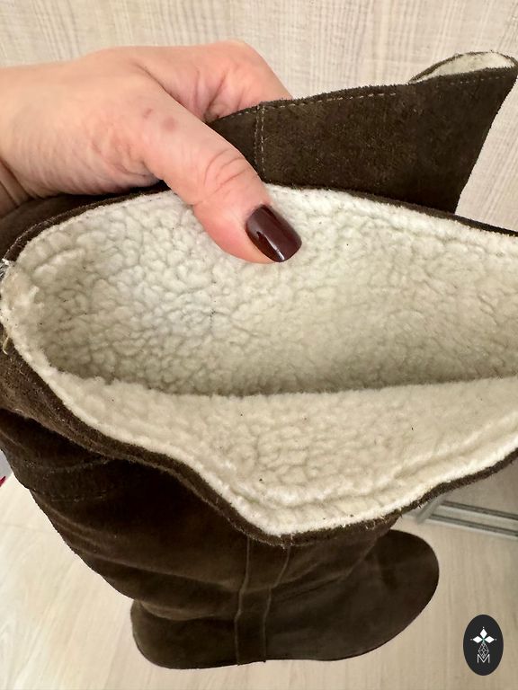Šilti zomšos batai. Atitinka dydį. Viduje užtrauktukas. Yra kita avalynė profilyje.