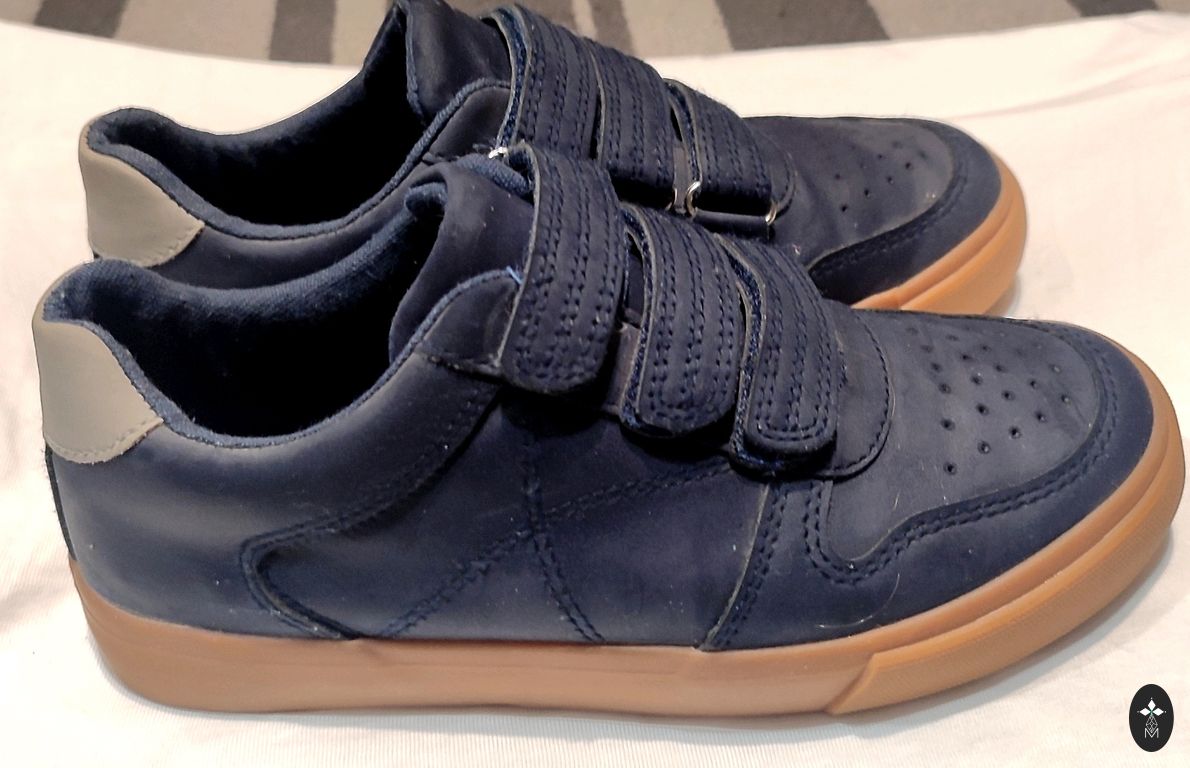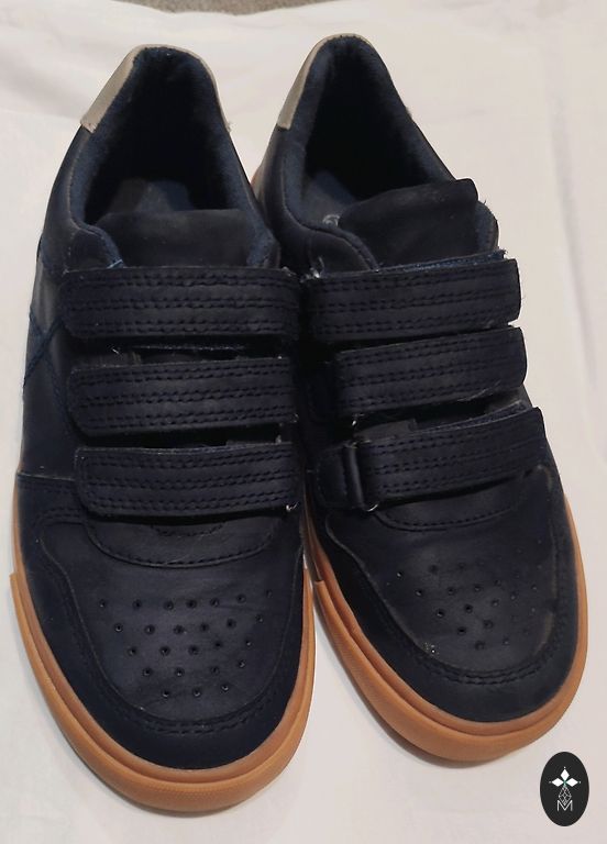 На язычке указано 17,5 см. Размер 29. Носили в садик на спортивные занятия, клипсы липнут отлично, только сбоку немного износилась ткань, но в целом супер состояние.