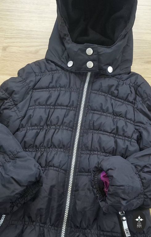 Внутренний карман для ски-пасса, крепится на талии, пух убирается с капюшона.