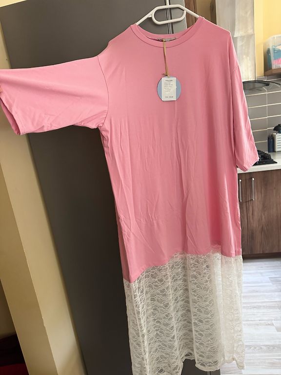 Jauna, gaiši zila hūdijkleita. L izmērs. Garums 96 cm , viduklī nestiepjot 37 cm. 67% kokvilna, 33% poliesters. Atrodas Siguldā. Sūtu ar pakomātiem, vai tiekos klātienē.