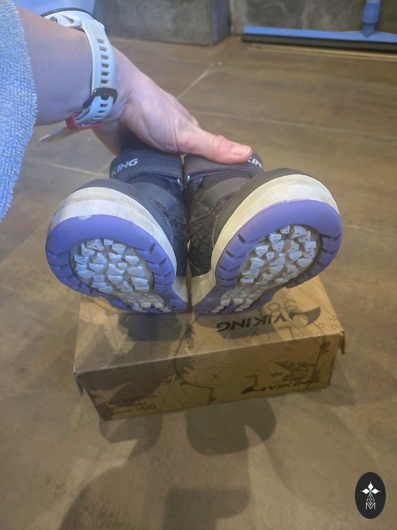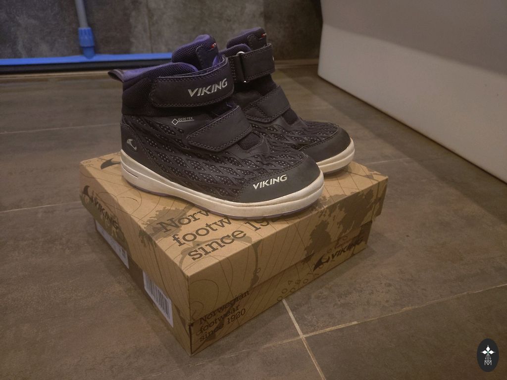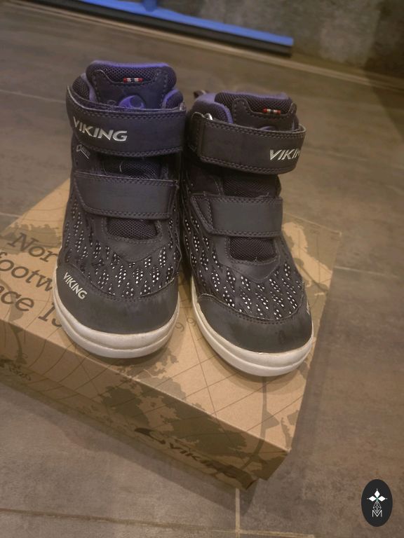 Viking Goretex winter boots size 32. Purchased last year at Kidzone store. Small scratches on the toes on the reflective element, not as noticeable as in the picture.