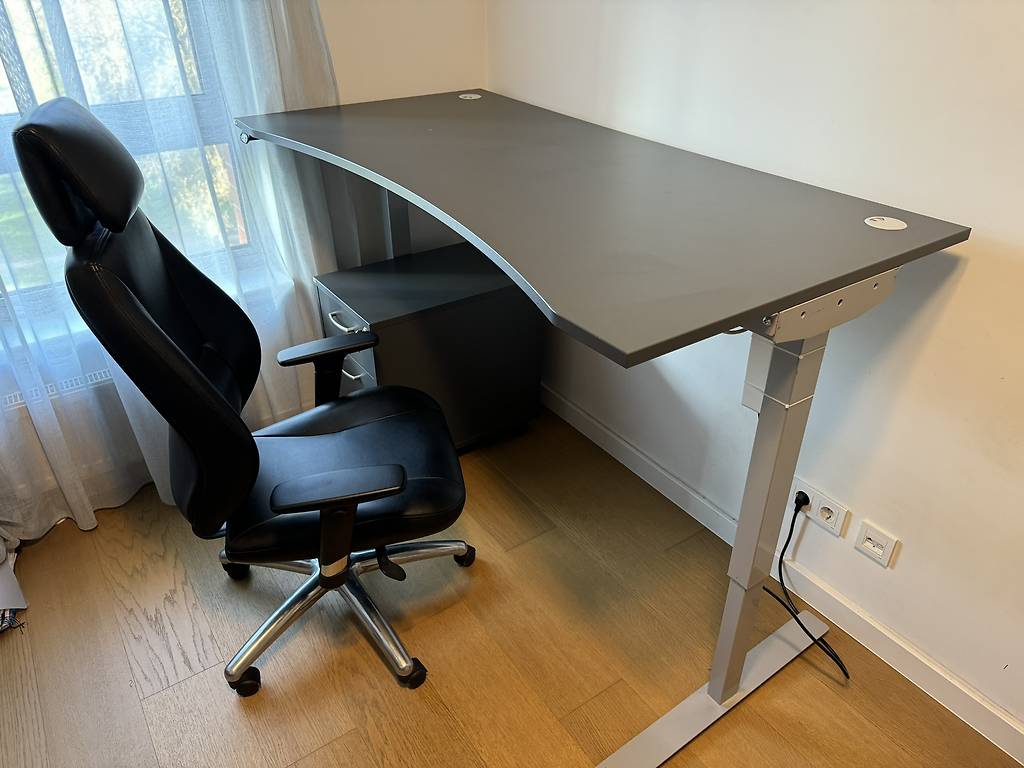 Administrator desk for sale. High quality, custom-made, shelves in excellent condition, the front panel can be painted in the required color. The tabletop is in excellent condition. Dimensions: 150 length x 130 depth, pedestal 50x55, top shelf is retractable. Pickup only.