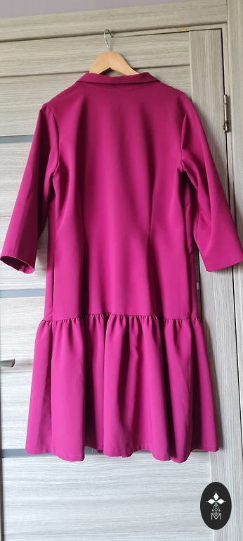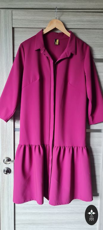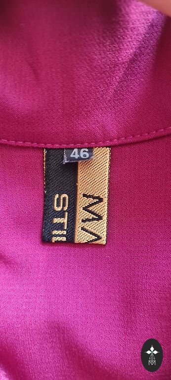 Back longer than the front, back length approximately 75 cm, front - 70 cm, chest 54 cm.