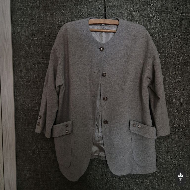 Sieviešu mētelis, 46. izmērs, kā jauns, bez defektiem, pūkošanās vai smakas. Fotoattēlā redzamais modelis valkā 40. izmēru. Der gan oversize, gan atbilstošam izmēram.