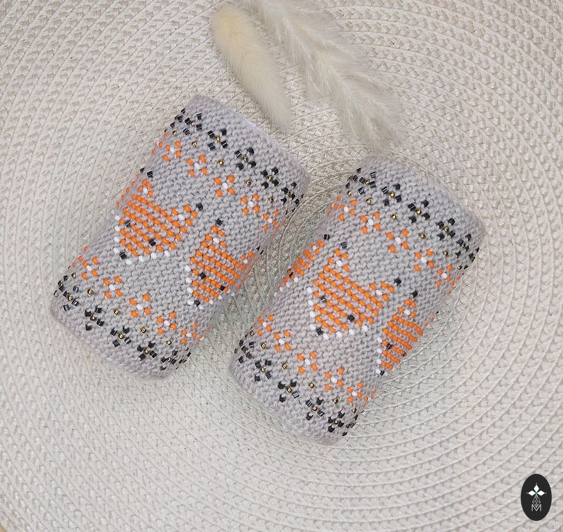 Ļoti skaisti maucīši! Svētkiem vai ikdienai. Bēši ar melnām un gaiši brūnām pērlītēm. Pērlītes ir heksagonformas, kas pie apgaismojuma mirdz.